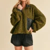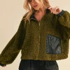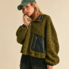 Collared Neck Zip Up Sherpa Jacket – Olive