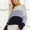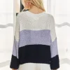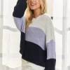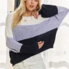 This comfy sweater showcases a stylish color block design for a trendy and eye-catching look. The color block pattern adds a modern and playful twist to the classic sweater silhouette, making it a versatile and fashion-forward piece. Perfect for staying cozy and chic, this color block sweater is a must-have for adding a pop of personality to your cold-weather wardrobe.