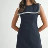 Contrast Piping Square Sailor Collar Mini Dress – Navy