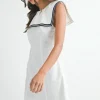 Contrast Piping Square Sailor Collar Mini Dress – Off White
