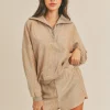 Corduroy Half Zip Top and Shorts Set – Taupe