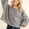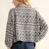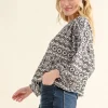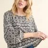 Cozy Textured Printed Casual Top – Black/White