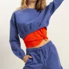 Crew Neck Long Sleeve Crop Sweatshirt – Dusty Indigo