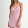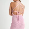 Crochet Crisscross Spaghetti Strap Mini Dress – Pink