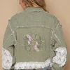 Crochet Patch Embroidered Button Up Jacket – Olive Multicolor