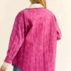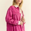 Curved Hem Diamond Quilted Button Up Denim Shacket – Hot Pink
