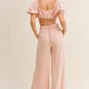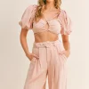 Cut Out Drawstring Crop Top and Belted Pants Set – Dusty Pink