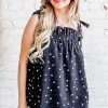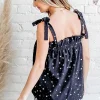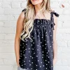 Daisy Polka Dot Print Ruffle Tank Top – Black