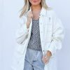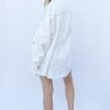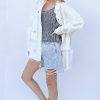 Distressed and Washed Button Down Denim Shacket – Off White