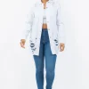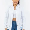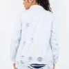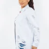 Distressed Button Up Long Sleeve Denim Jacket – White