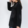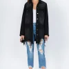 Distressed Frayed Hem Denim Jacket – Black
