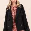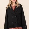 Double Breasted Long Sleeve Trench Coat Jacket – Black
