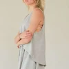 Drawstring Hem Round Neck Tank and Pants Set – Heather Grey