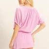 Drawstring Hem Short Sleeve Top and Skort Set – Blush Pink