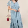 An embroidered boho ruffled midi dress is a stylish piece that combines intricate stitching with flowing ruffles in a medium-length silhouette. This dress embodies a bohemian aesthetic with its detailed embroidery and playful ruffle accents. Perfect for casual or dressy occasions, it offers a chic and unique look for those who love bohemian-inspired fashion.