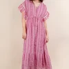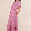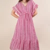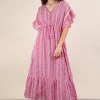 Embroidered Boho Ruffled Midi Dress – Fuchsia