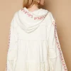 Embroidered Lace Patch Zip Up Hooded Jacket – Ivory