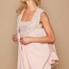 Embroidered Pearls Open Front Sleeveless Cardigan – Apricot
