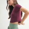 Essential Micro-ribbed Cropped Athleisure Tee – Plum 24