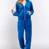 Faux Fur Zip Up Long Sleeve Hoodie and Joggers Set – Deep Blue