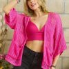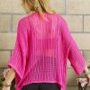 Fishnet Knit 3/4 Sleeve Cardigan – Hot Pink