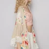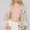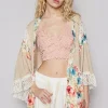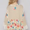 Floral Crochet Detail Open Front 3/4 Sleeve Cardigan – Tan