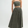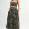 This floral crop top and skirt set is a delightful choice for a feminine and playful outfit. The charming floral pattern adds a touch of whimsy to the ensemble, perfect for a sunny day out. Elevate your style with this coordinated set that exudes a fun and vibrant vibe.