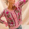 Floral Intarsia Button Up Sweater Cardigan – Pink
