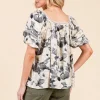 Floral Print Lace Trim Puff Sleeve Blouse – Black Combo