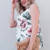 Floral Printed Casual Tank Top – Peach