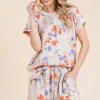 Floral Round Neck RIbbed T-Shirt – As Shown