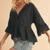 - Features: Lace Detail, Ruffled, Peplum, Eyelet