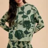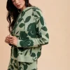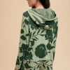 Flower Pattern Drawstring Hooded Top and Shorts Sweater Set – Green Combo