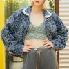 Flower Textured Raw Hem Long Sleeve Denim Jacket – Dark