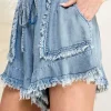 Frayed Drawstring Denim Shorts – Light Denim