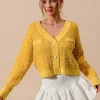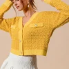 Frayed Tweed Knit Buttoned Front Cardigan – Mustard