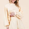 Stay cozy and stylish in this French terry sweatshirt and shorts set. The French terry fabric is soft and comfortable for all-day wear. The matching set creates a cohesive and effortlessly chic look. Perfect for lounging at home or running errands in style. Embrace comfort and fashion with this trendy sweatshirt and shorts set.