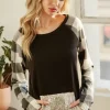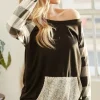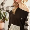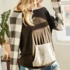 French Terry Top with Sequins Kangaroo Pocket – Black/Black Check