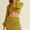 Front Twisted Knit Top and Midi Skirt Set – Moss Green