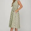 Front Zip Polka Dots Cap Sleeve Midi Dress – Sage