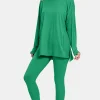 Full Size Brushed Microfiber Top and Leggings Lounge Set – K Green