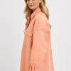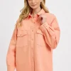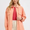 Full Size Button Down Long Sleeve Denim Shacket with Chest Pockets Plus Size – Watermelon Pink