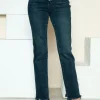 Full Size Button Fly Hem Destroy Straight Jeans – Dark