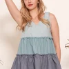 Full Size Color Block V-Neck Baby Doll Sleeveless Top Plus Size – Denim Combo