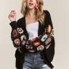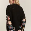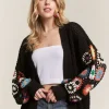 Full Size Contrast Crochet Open Front Long Sleeve Cardigan Plus Size – Black