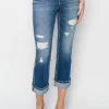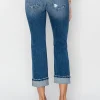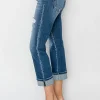 Full Size Cuffed Ankle Distressed Straight Jeans – Dark