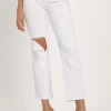 Distressed cropped straight jeans are a trendy and versatile denim option. The distressed detailing adds a fashionable, worn-in look to the jeans, giving them an edgy and casual vibe. The straight leg cut offers a timeless silhouette that is flattering and easy to style with a variety of tops and shoes. The cropped length is perfect for showcasing your favorite footwear, whether it’s sneakers, sandals, or boots. These jeans are great for creating on-trend and casual outfits for everyday wear.