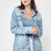 Full Size Distressed Long Sleeve Denim Jacket Plus Size – Light
