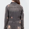 Full Size Distressed Star Stud Trim Denim Rider Jacket Plus Size – Vintage Wash