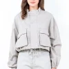 Full Size Drawstring Hem Cargo Pocket Cropped Worker Jacket Plus Size – Light Gray